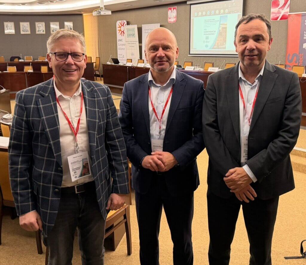 Zarząd Kamiennogórska Specjalna Strefa Ekonomiczna Małej Przedsiębiorczości, w osobach Prezes Arkadiusz Dybiec i Wiceprezes Robert Greb, uczestniczy w 172. Konferencji Podatkowej pt. „𝐓𝐫𝐳𝐲 𝐝𝐞𝐤𝐚𝐝𝐲 𝐬𝐭𝐫𝐞𝐟 𝐞𝐤𝐨𝐧𝐨𝐦𝐢𝐜𝐳𝐧𝐲𝐜𝐡 𝐰 𝐏𝐨𝐥𝐬𝐜𝐞 – 𝐝𝐨𝐬́𝐰𝐢𝐚𝐝𝐜𝐳𝐞𝐧𝐢𝐚, 𝐰𝐲𝐳𝐰𝐚𝐧𝐢𝐚 𝐢 𝐤𝐢𝐞𝐫𝐮𝐧𝐤𝐢 𝐳𝐦𝐢𝐚𝐧 𝐰 𝐩𝐫𝐚𝐰𝐢𝐞 𝐩𝐨𝐝𝐚𝐭𝐤𝐨𝐰𝐲𝐦”, zorganizowanej przez Łódzka Specjalna Strefa Ekonomiczna.