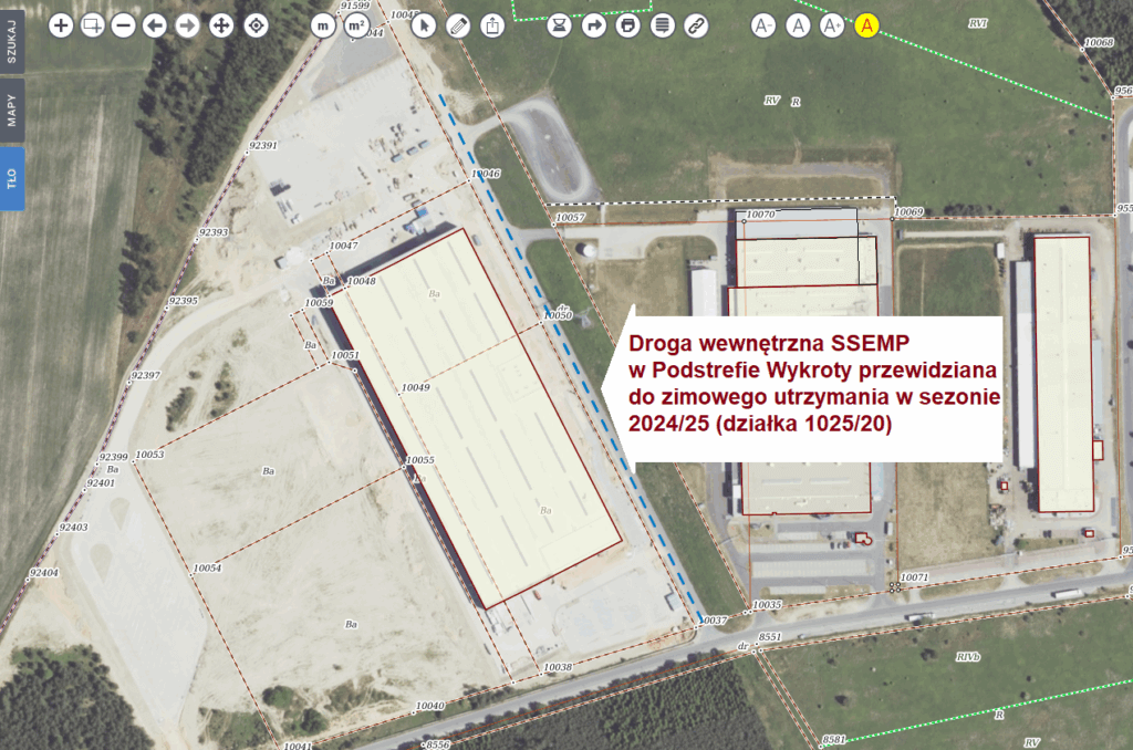 2) odśnieżanie drogi wewnętrznej w Podstrefie Wykroty tj. działki o numerze ewidencyjnym 1025/20 o identyfikatorze: 020104_5.0009.1025/20 na odcinku o długości około 370 m;