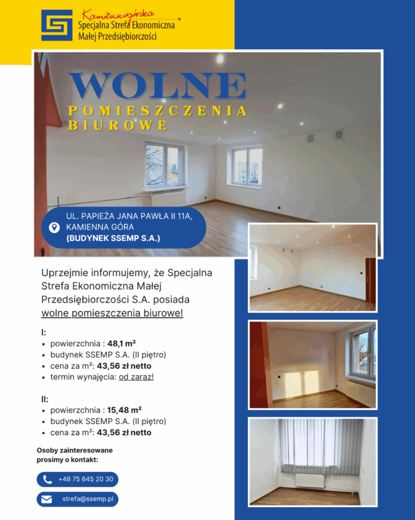 𝐏𝐑𝐙𝐄𝐃𝐒𝐈𝐄̨𝐁𝐈𝐎𝐑𝐂𝐎! 𝐑𝐨𝐳𝐰𝐢𝐣𝐚𝐣 𝐬𝐰𝐨́𝐣 𝐛𝐢𝐳𝐧𝐞𝐬 𝐳 𝐊𝐚𝐦𝐢𝐞𝐧𝐧𝐨𝐠𝐨́𝐫𝐬𝐤𝐚̨ 𝐒𝐩𝐞𝐜𝐣𝐚𝐥𝐧𝐚̨ 𝐒𝐭𝐫𝐞𝐟𝐚̨ 𝐄𝐤𝐨𝐧𝐨𝐦𝐢𝐜𝐳𝐧𝐚̨ 𝐌𝐚ł𝐞𝐣 𝐏𝐫𝐳𝐞𝐝𝐬𝐢𝐞̨𝐛𝐢𝐨𝐫𝐜𝐳𝐨𝐬́𝐜𝐢 Co oferujemy?  Zwolnienie z podatku CIT/PIT w wysokości: 25% zwrotu nakładów inwestycyjnych dla dużych firm, 35% dla średnich firm, aż 45% dla mikro i małych przedsiębiorstw.  Atrakcyjne tereny inwestycyjne na Dolnym Śląsku i w Wielkopolsce!  Doradztwo na każdym etapie realizacji inwestycji – opiekę poinwestycyjną!  […]